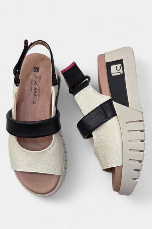 JOSE SAENZ 4206 CREAM/BLACK LEATHER PEEP TOE SHOE