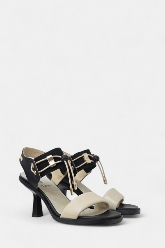 NeroGiardini E513723D Black/beige heeled leather sandal