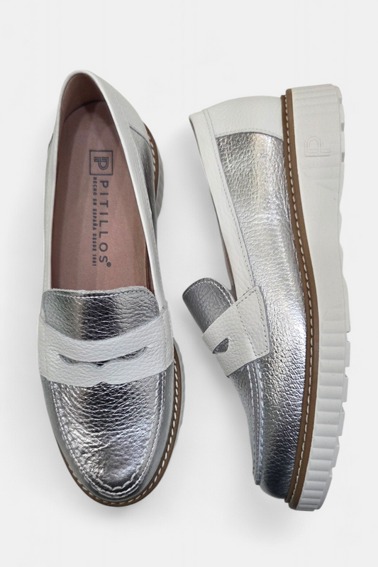 PITILLOS 11082 SILVER LEATHER LOAFER