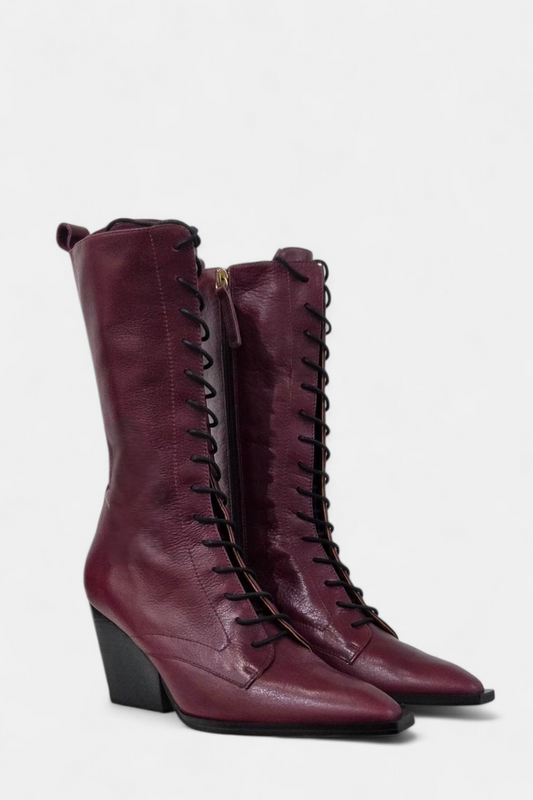 ANGEL ALARCON LORRAINE BURGUNDY LEATHER MID CALF BOOT