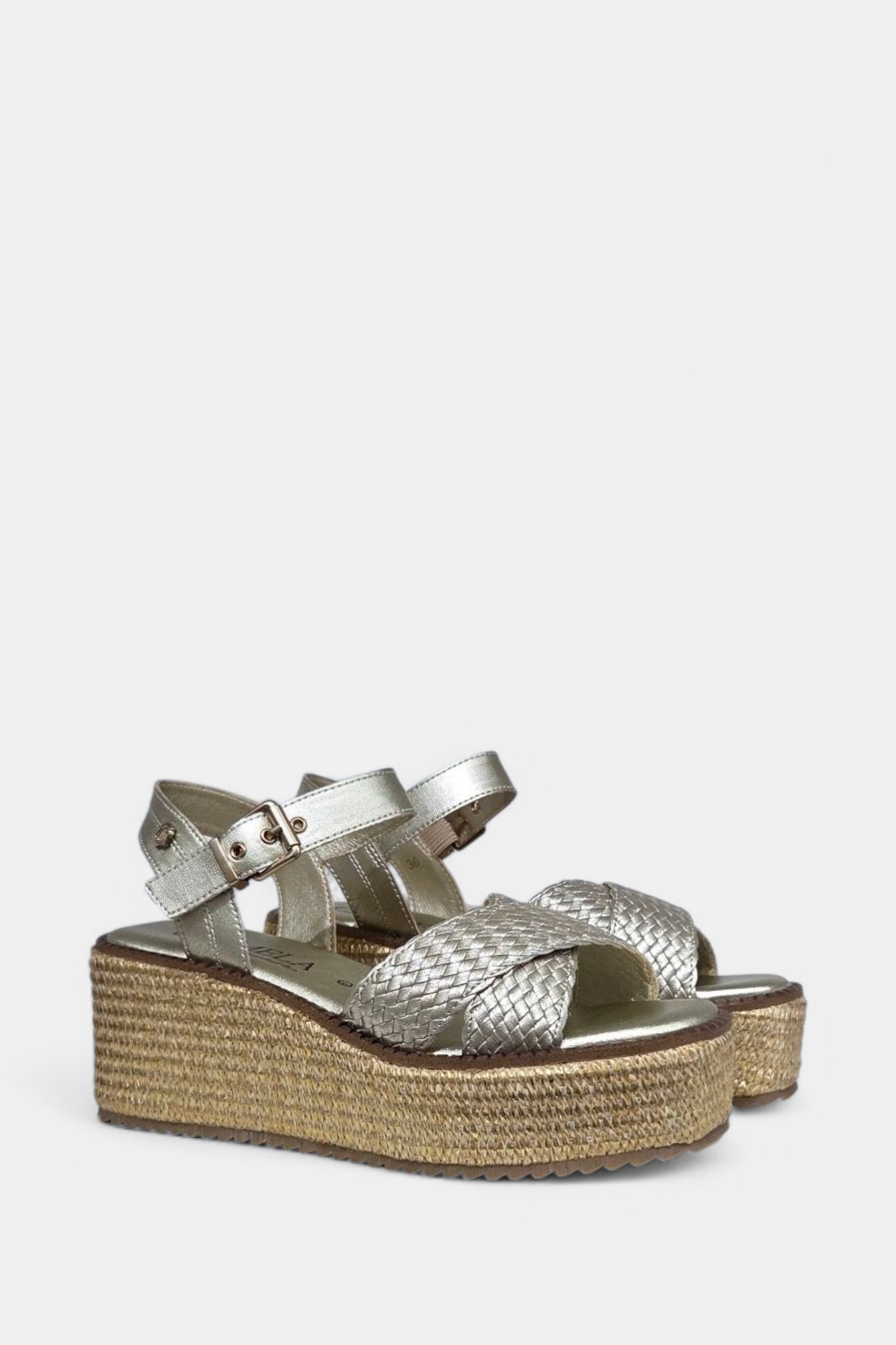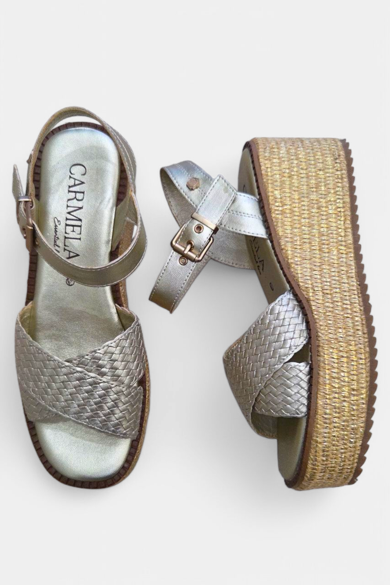 CARMELA 162361 GOLD WOVEN LEATHER WEDGE