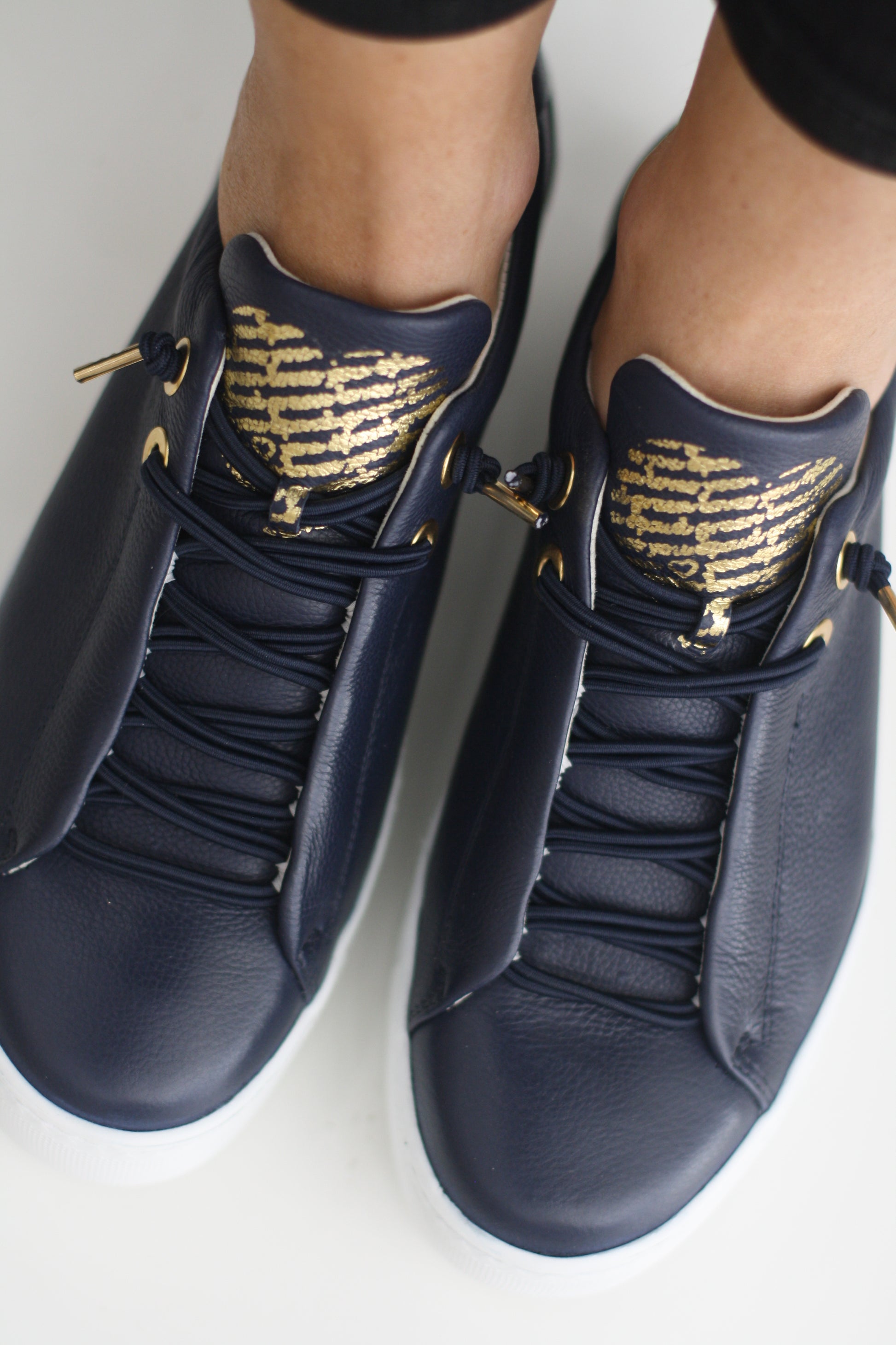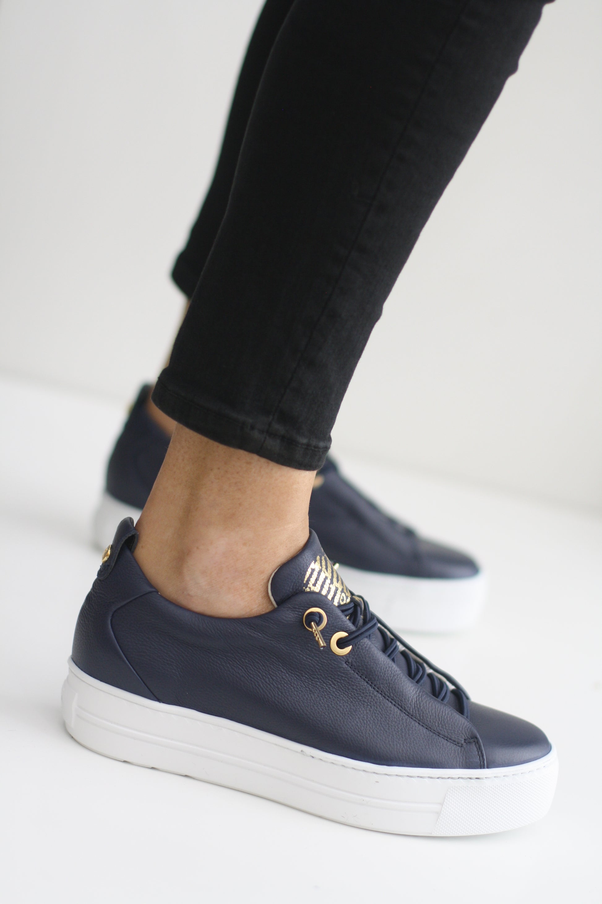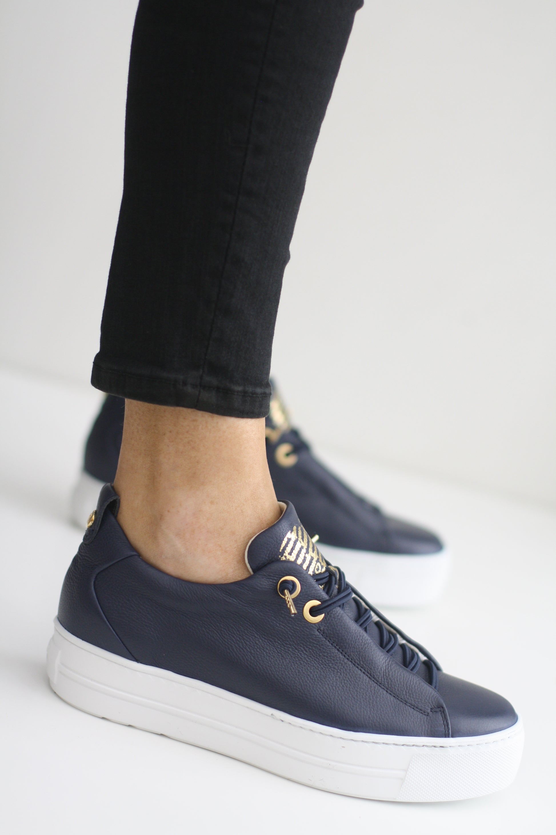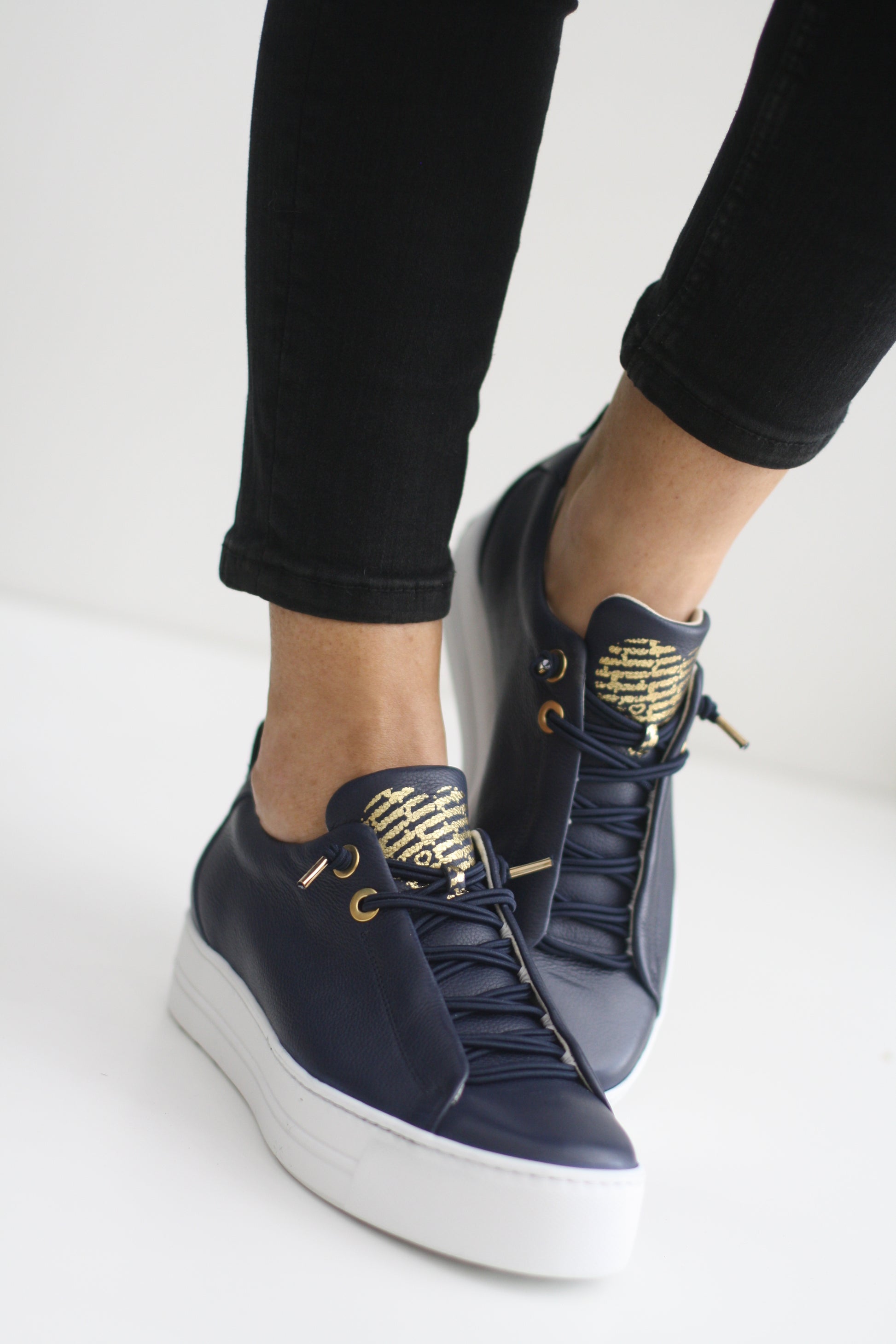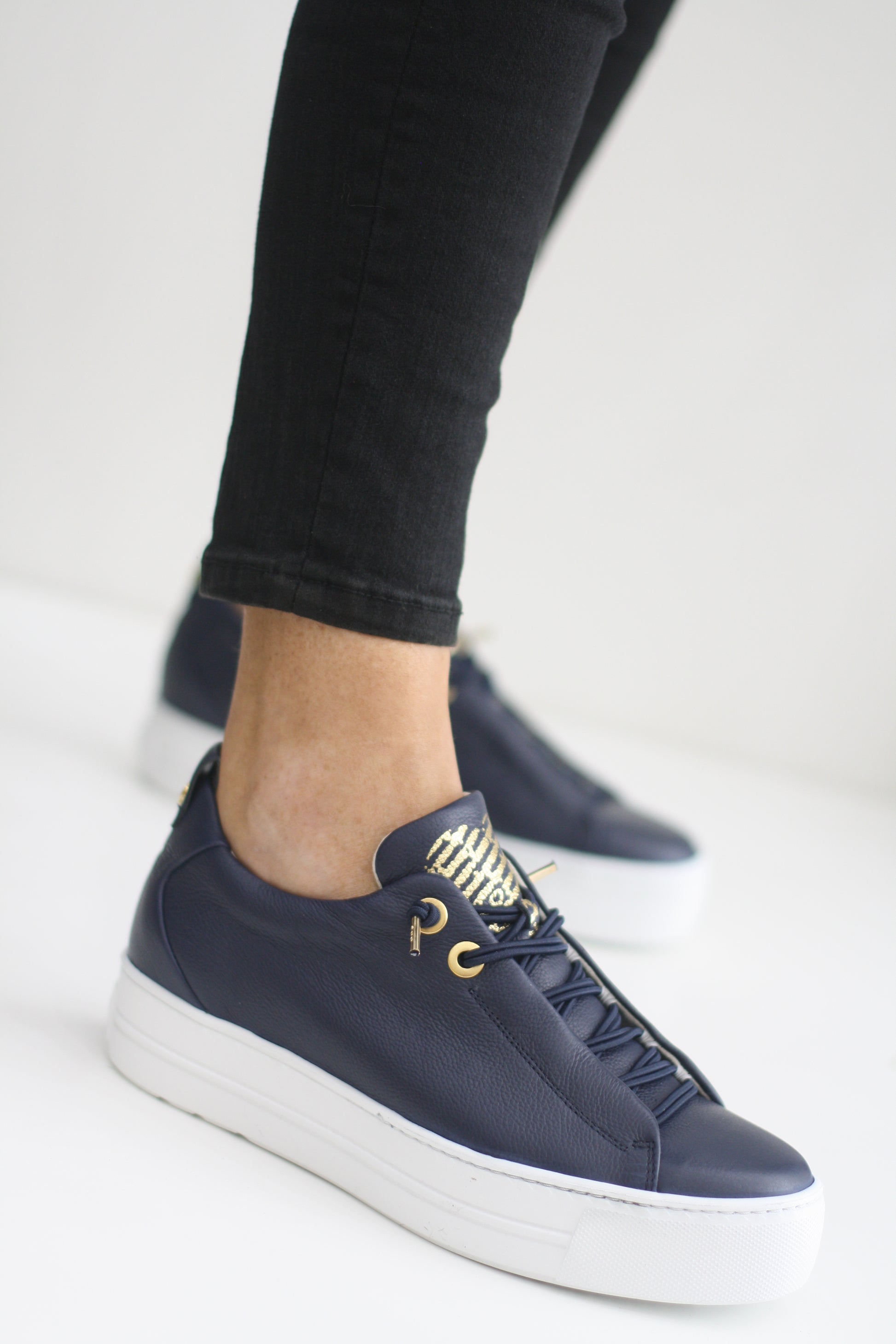 PAUL GREEN 5017 NAVY LEATHER TRAINER