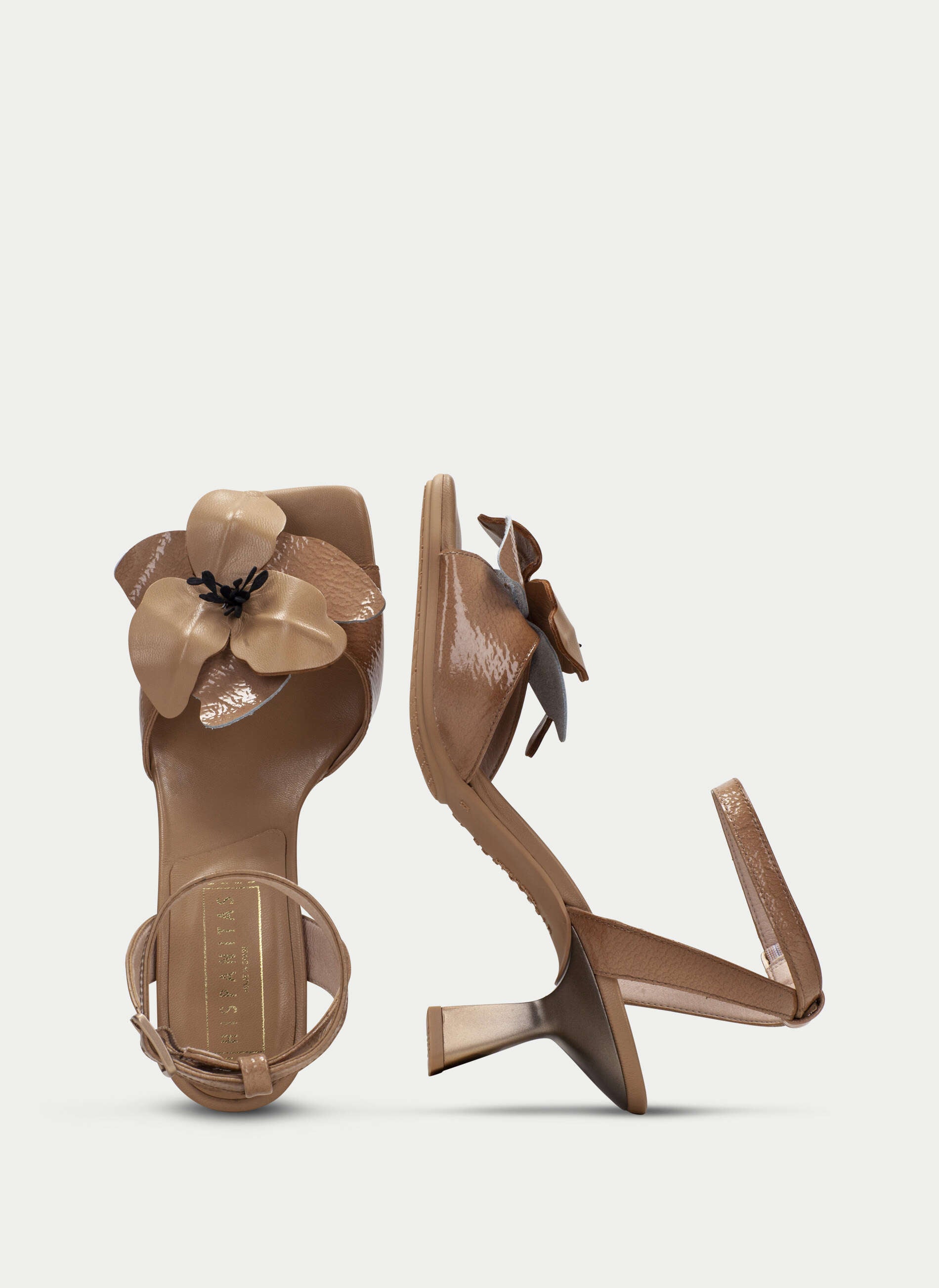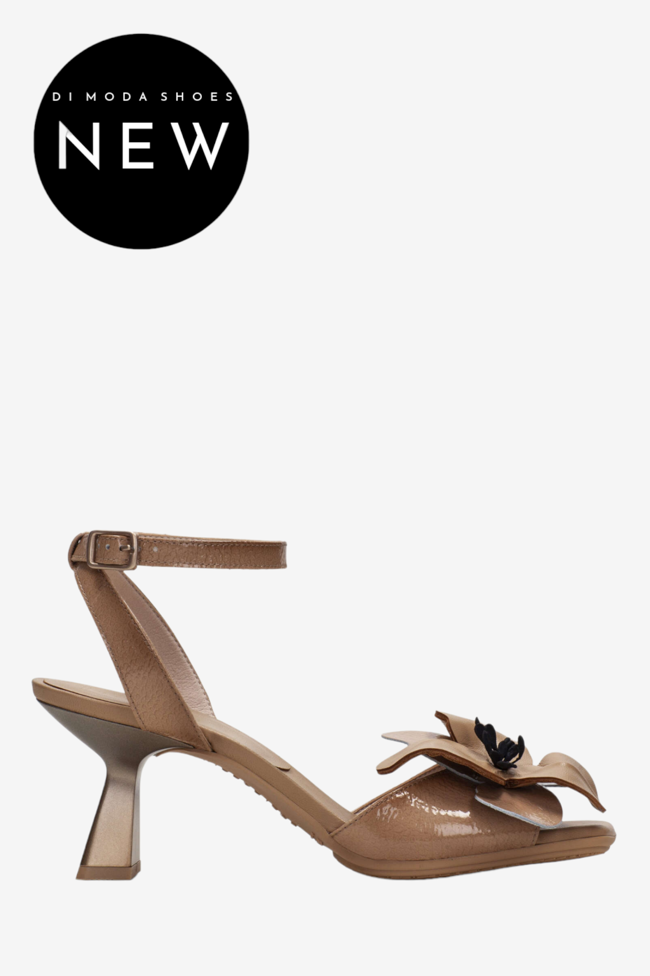 HISPANITAS HV243240 CAMEL FLORAL LEATHER HEELED SANDAL
