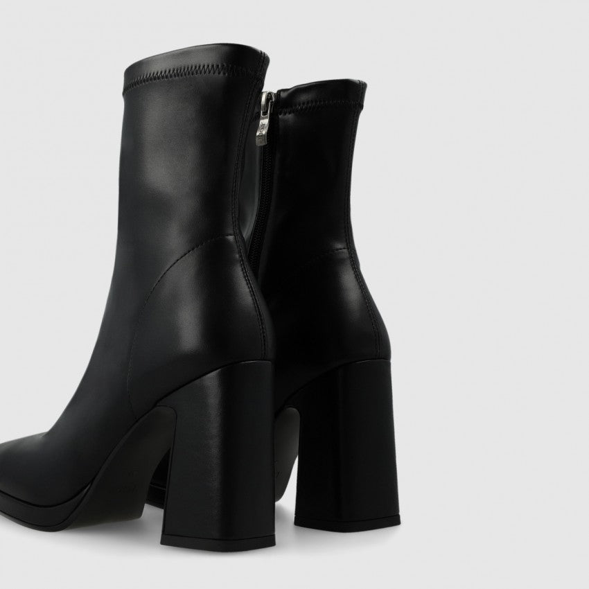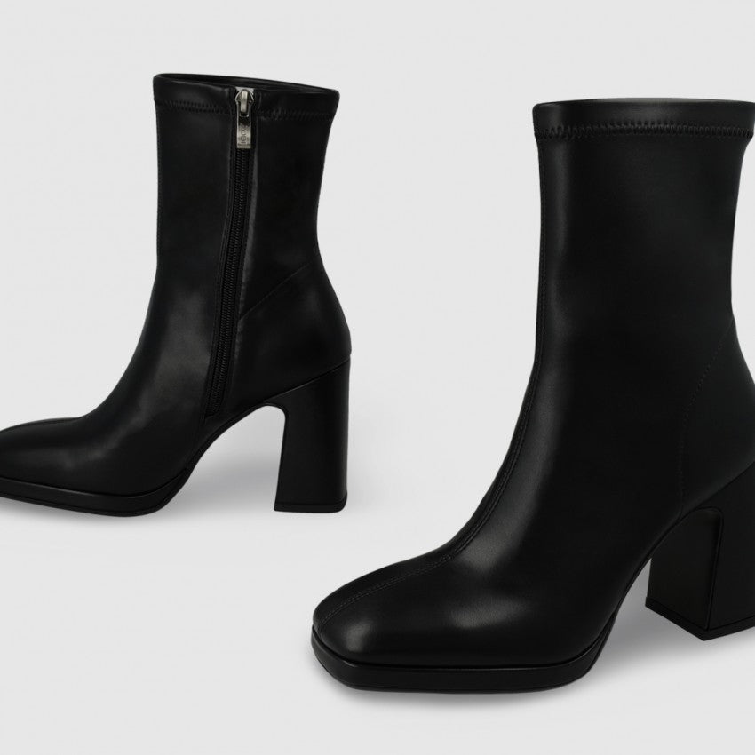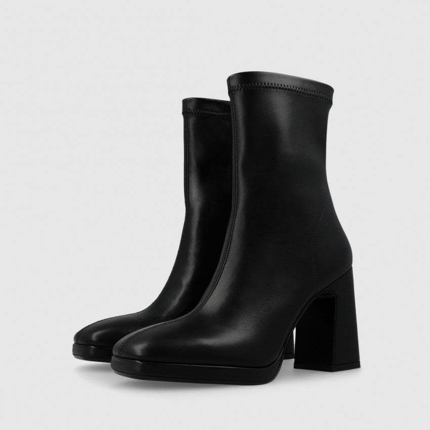Women´s elastic leather booties with heel and platform