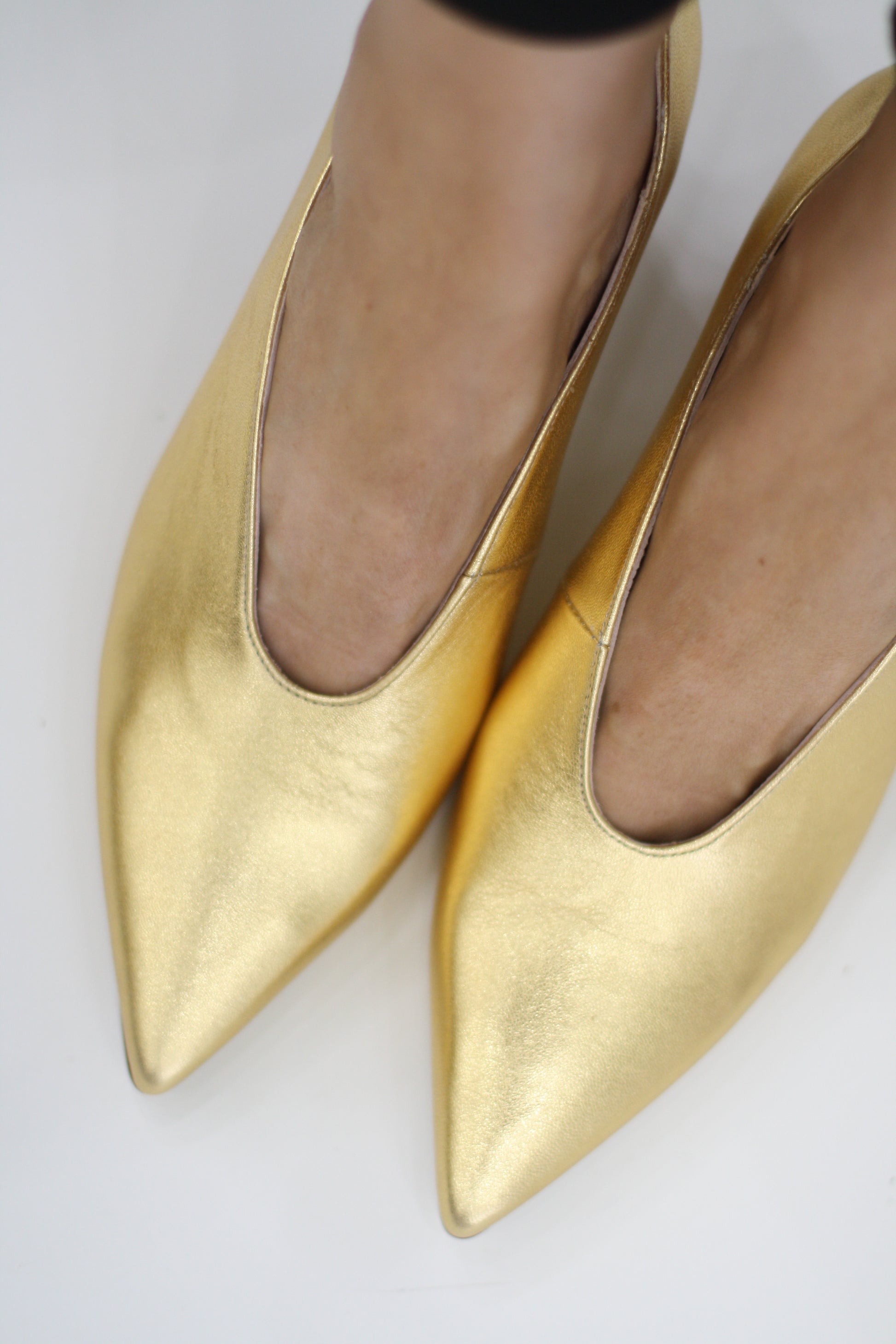MARIAN 2915 BRIGHT GOLD LEATHER BLOCK HEEL