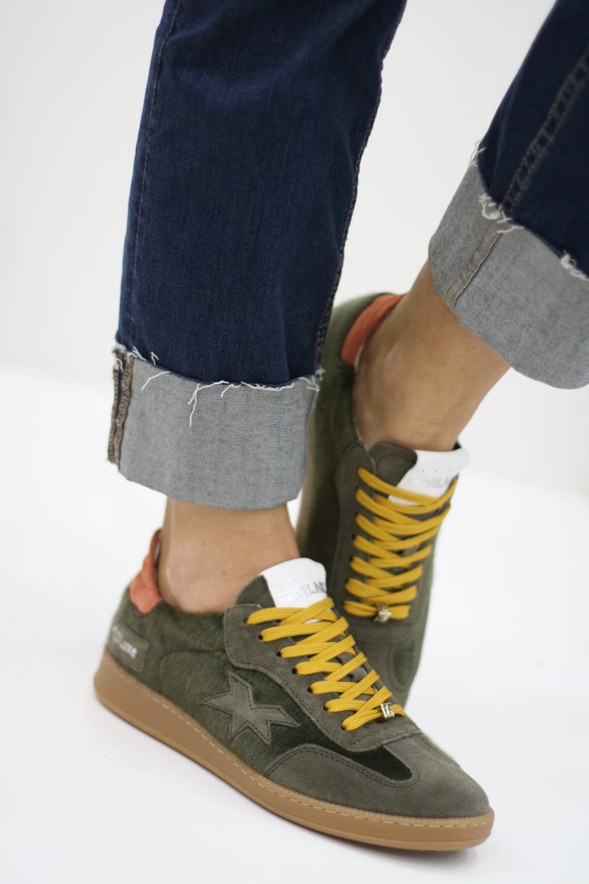 MELINE 107 KHAKI/ MUSTARD PONYHAIR TRAINER