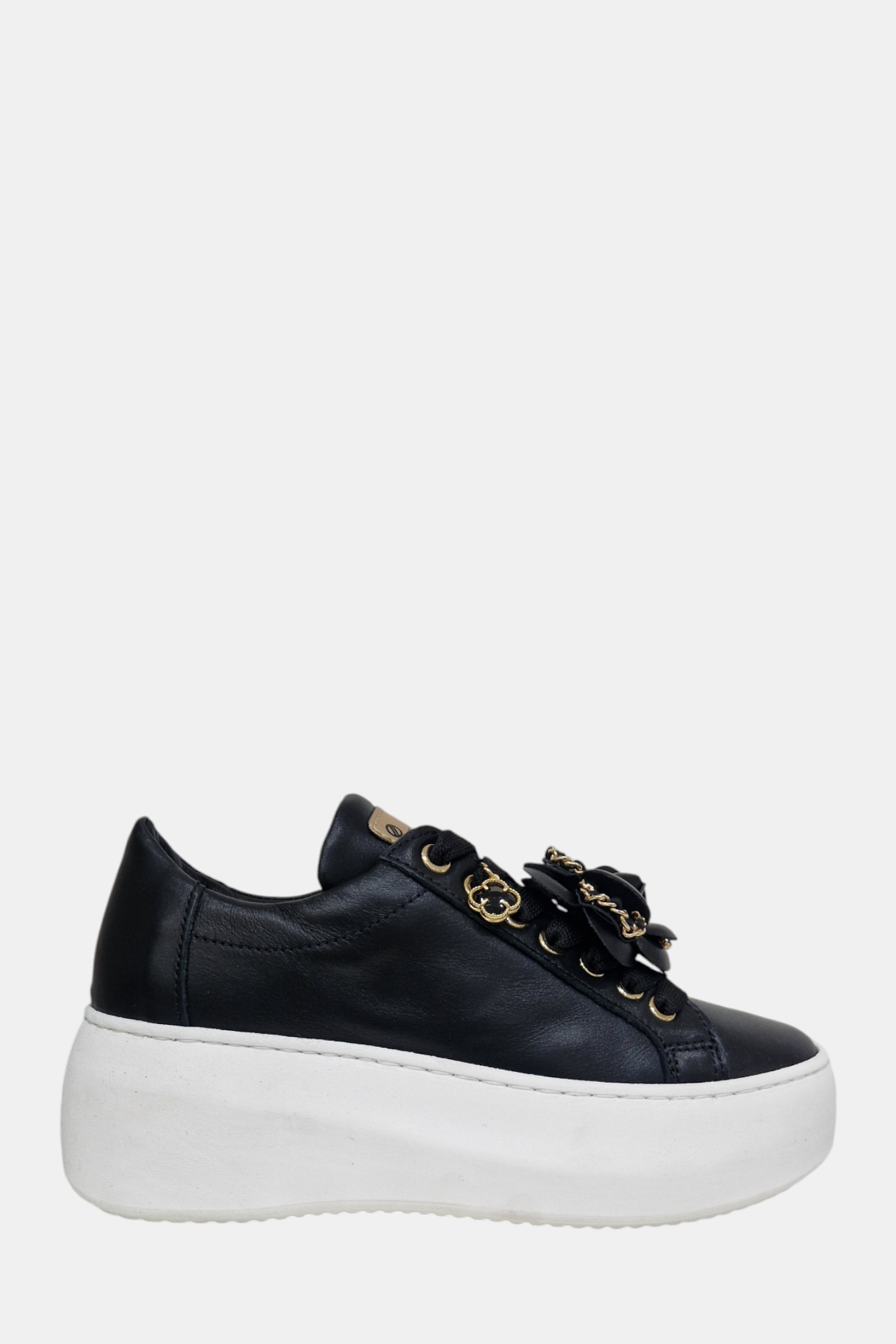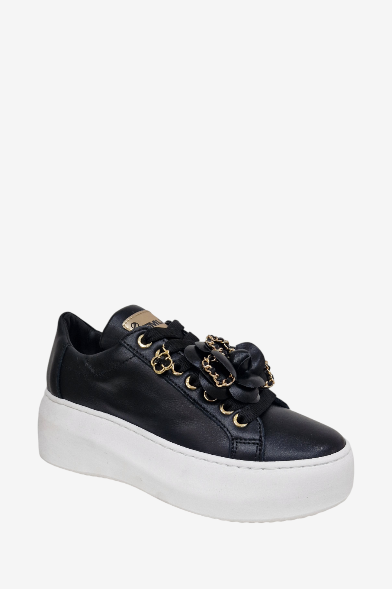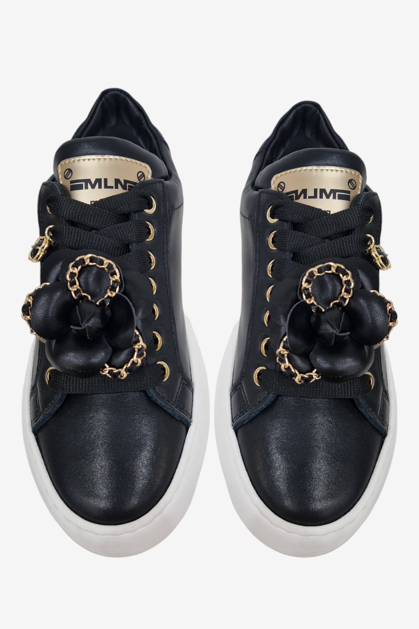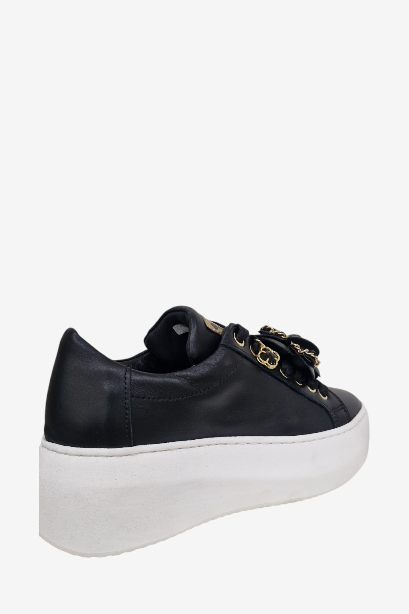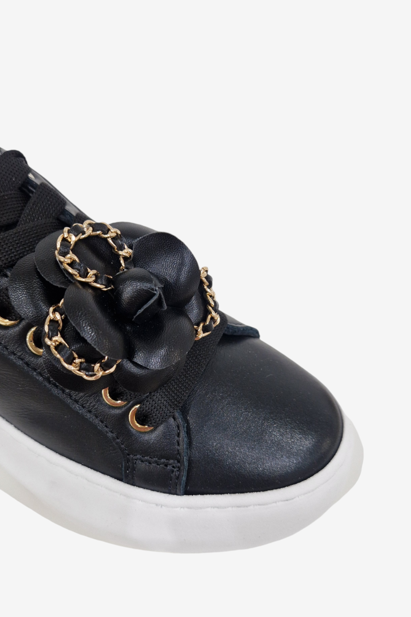 MELINE FLORAL BLACK LEATHER CHUNKY TRAINER