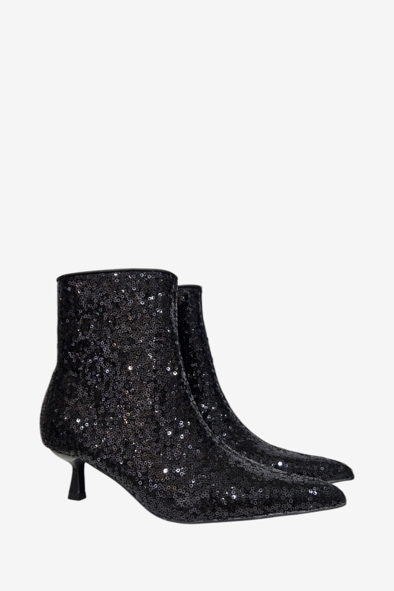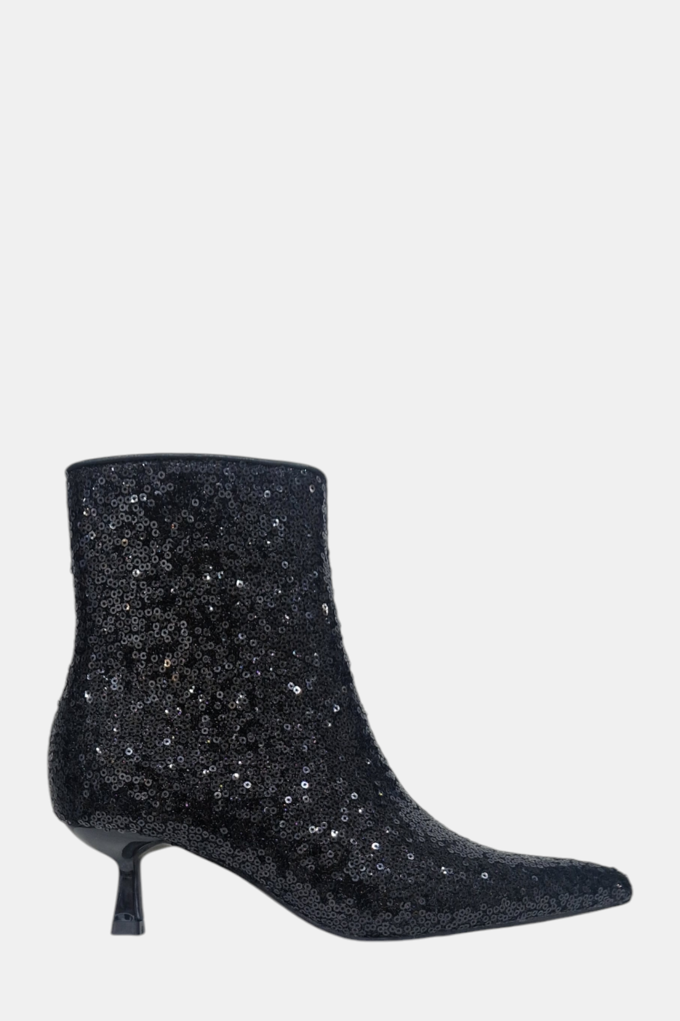 MENBUR 25791 BLACK SEQUIN KITTEN HEEL BOOT