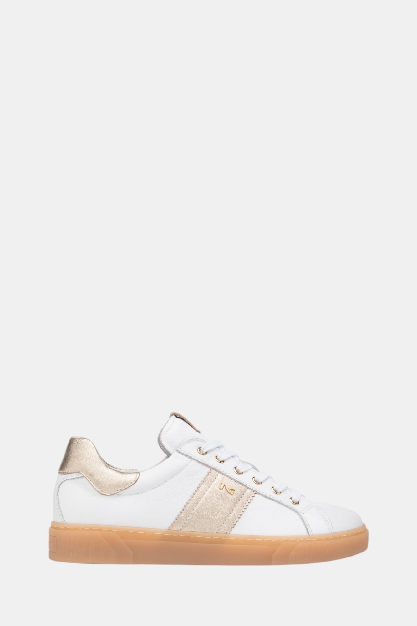 NEROGIARDINI E513006 WHITE/GOLD LEATHER TRAINERS