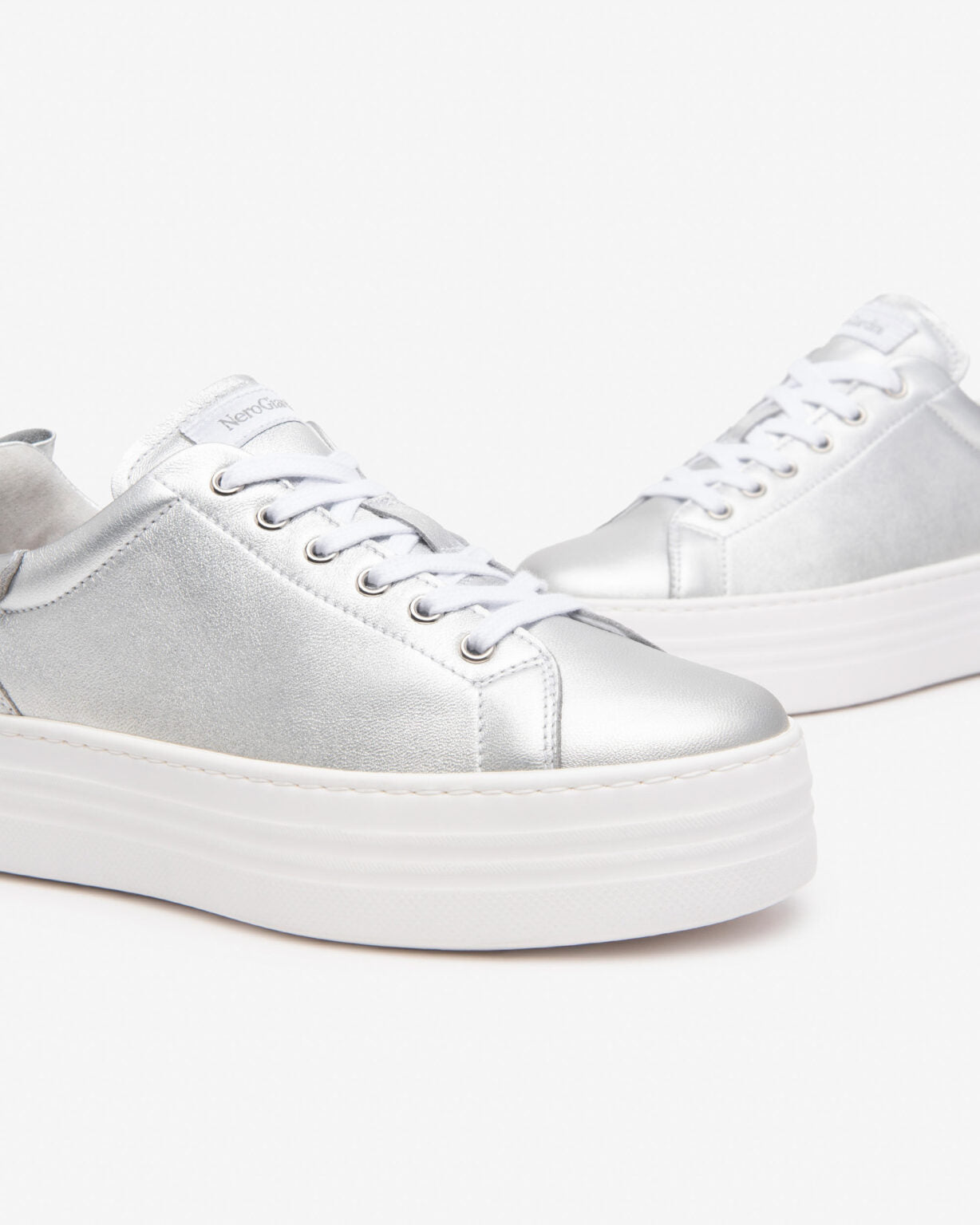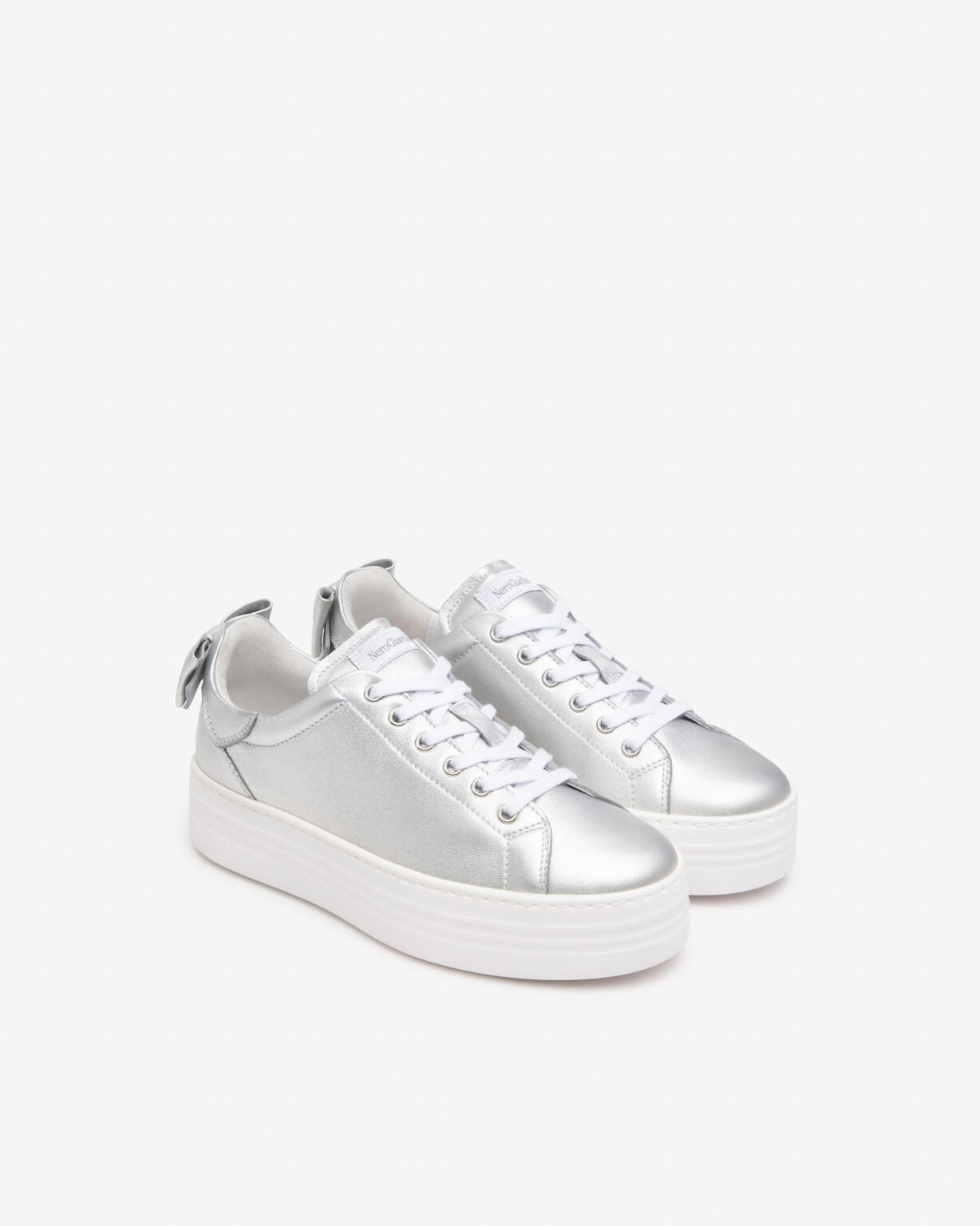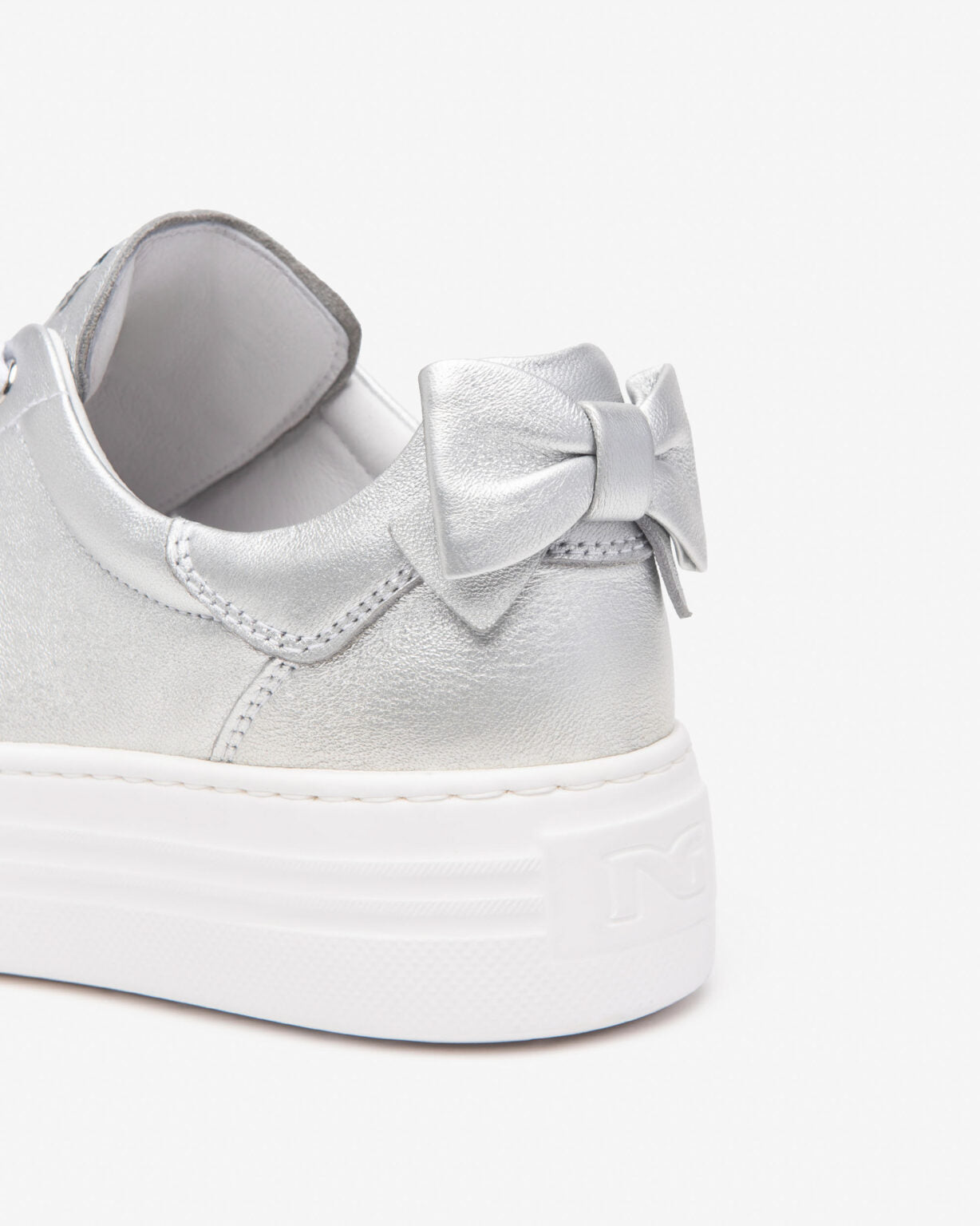 NEROGIARDINI E513020 SILVER BOW LEATHER TRAINERS