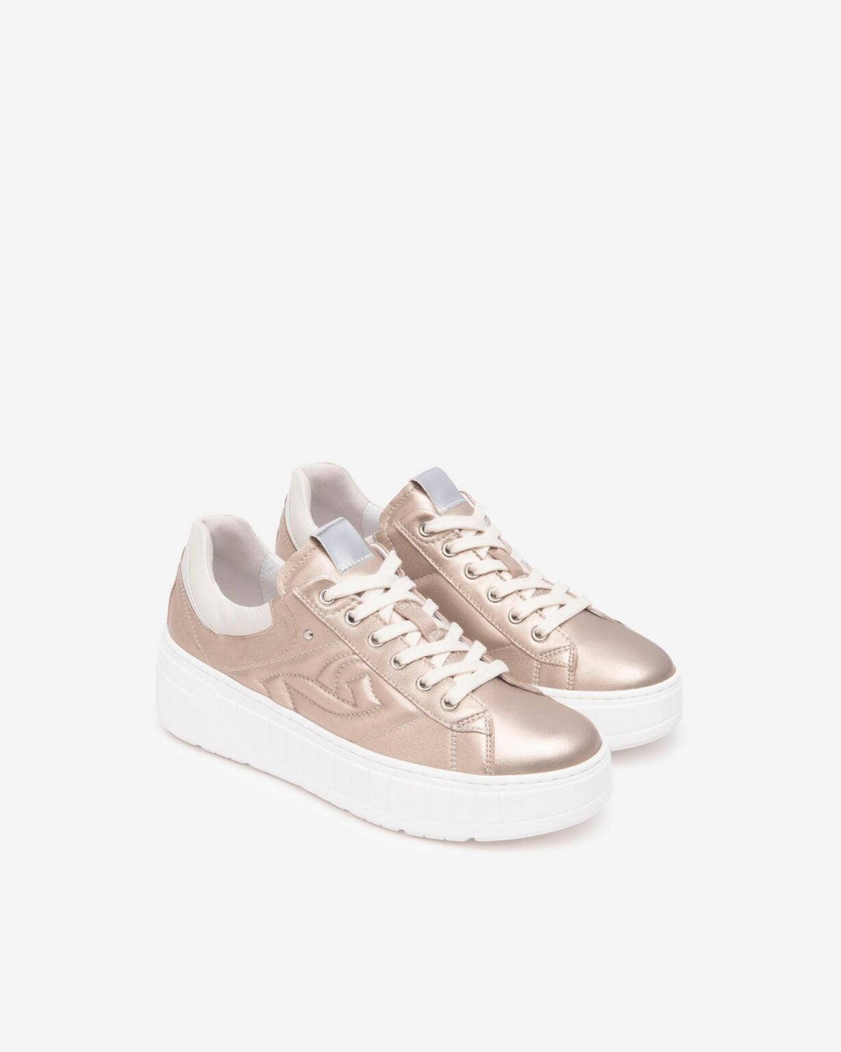 NEROGIARDINI E513091 ROSE GOLD LEATHER TRAINER