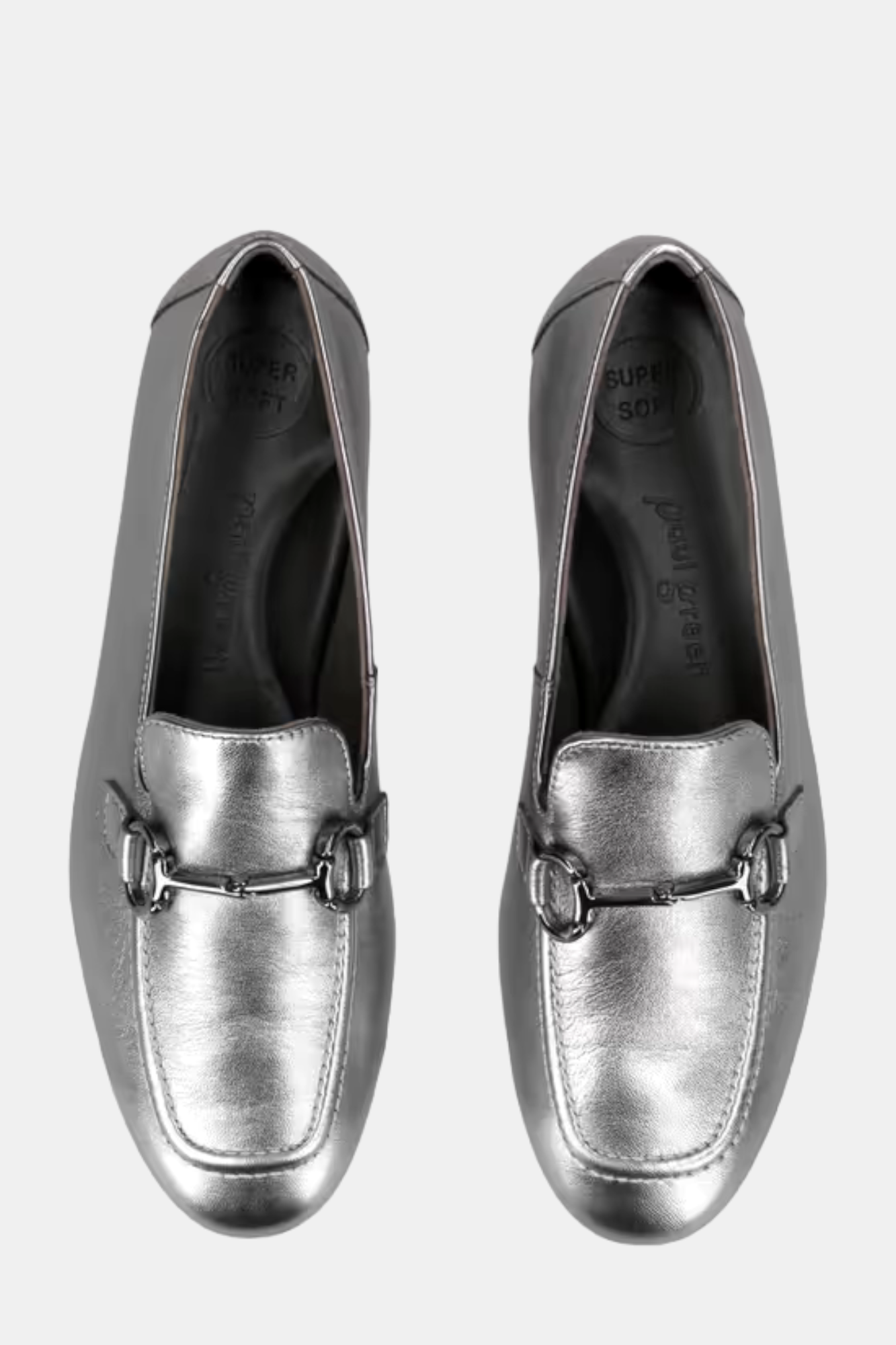 PAUL GREEN 2596 PEWTER LEATHER LOAFERS