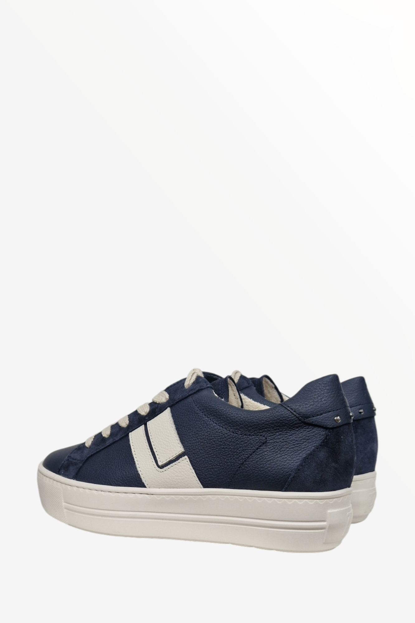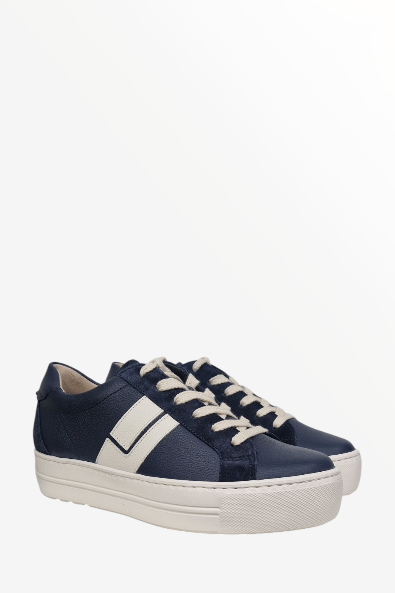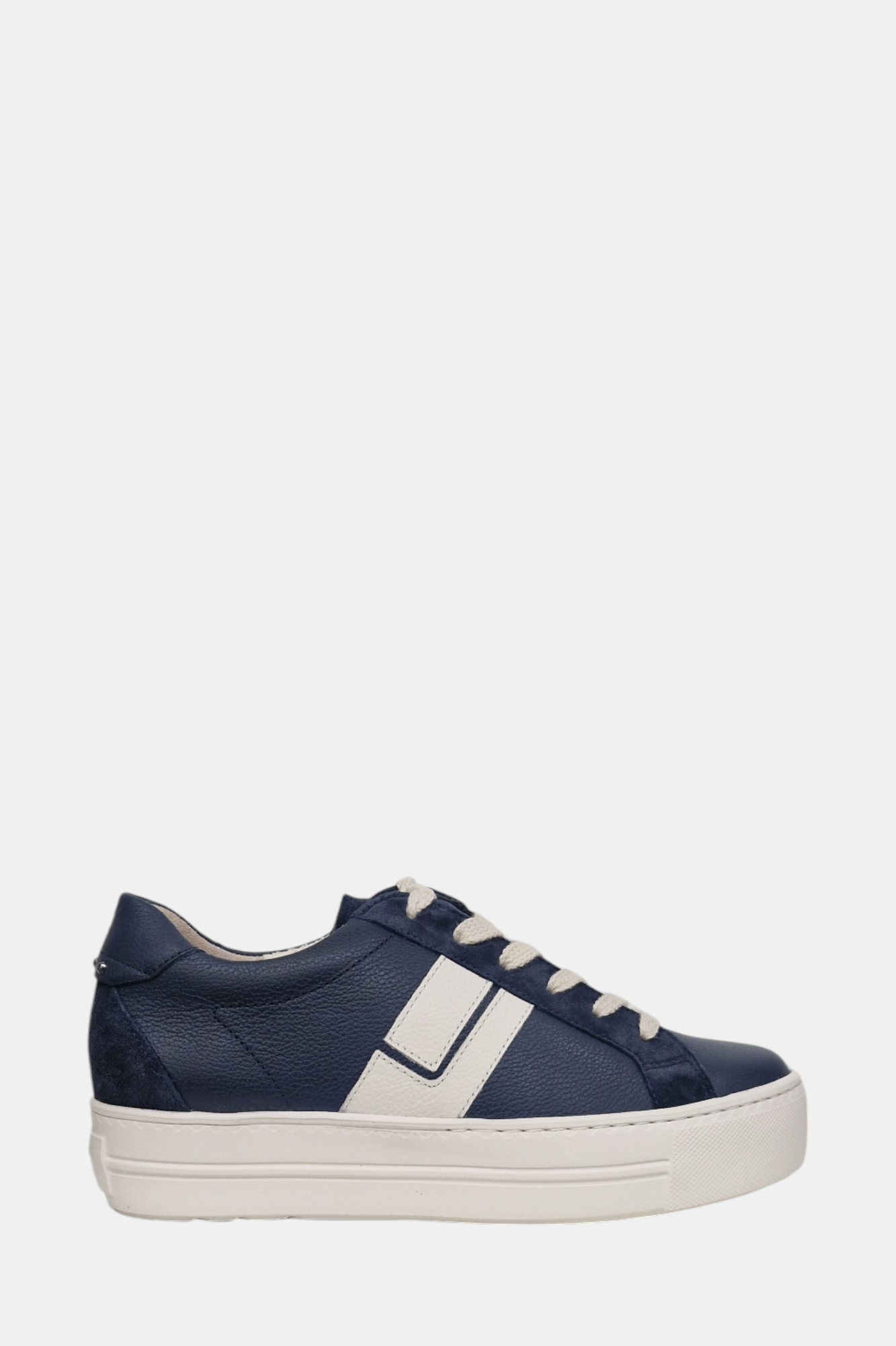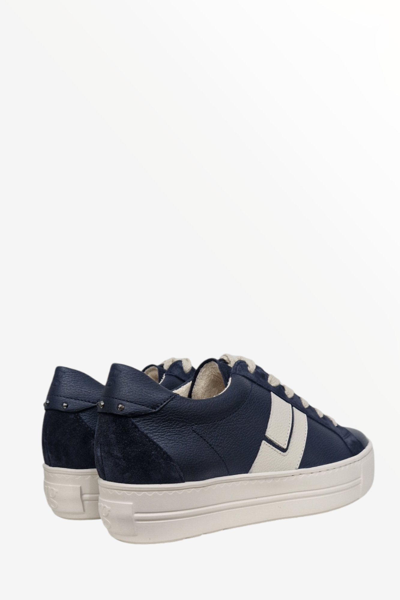 PAUL GREEN 5430 NAVY CREAM LEATHER TRAINER