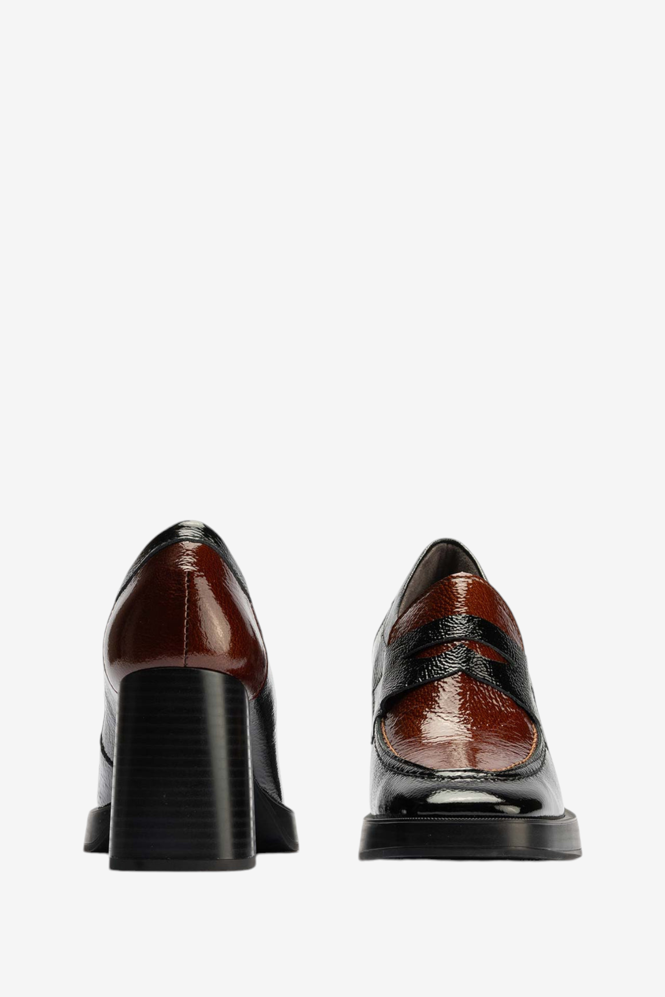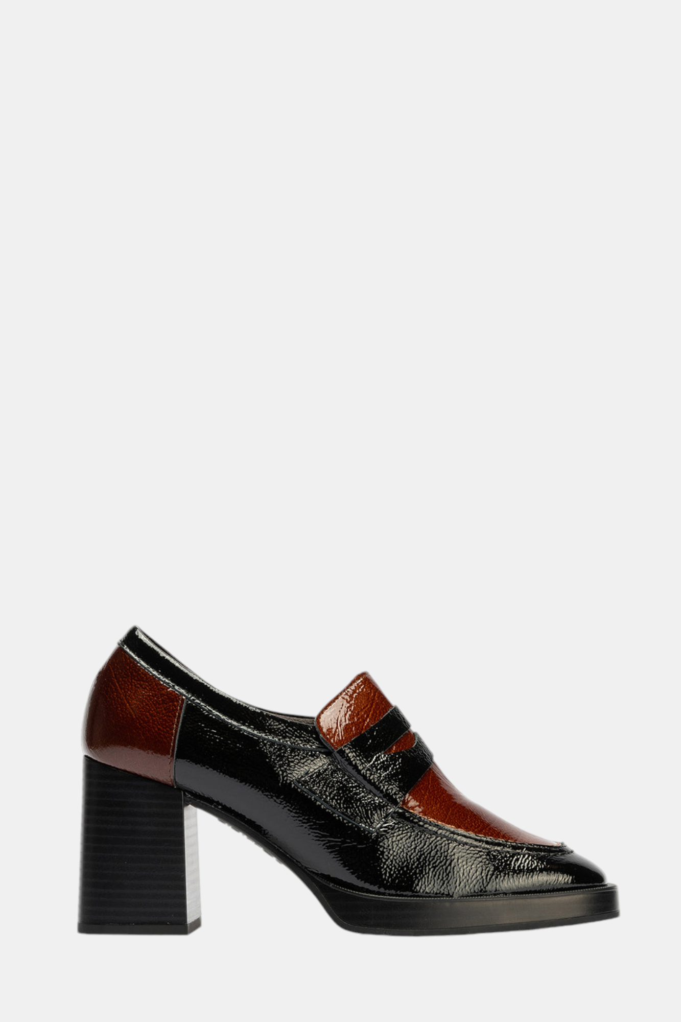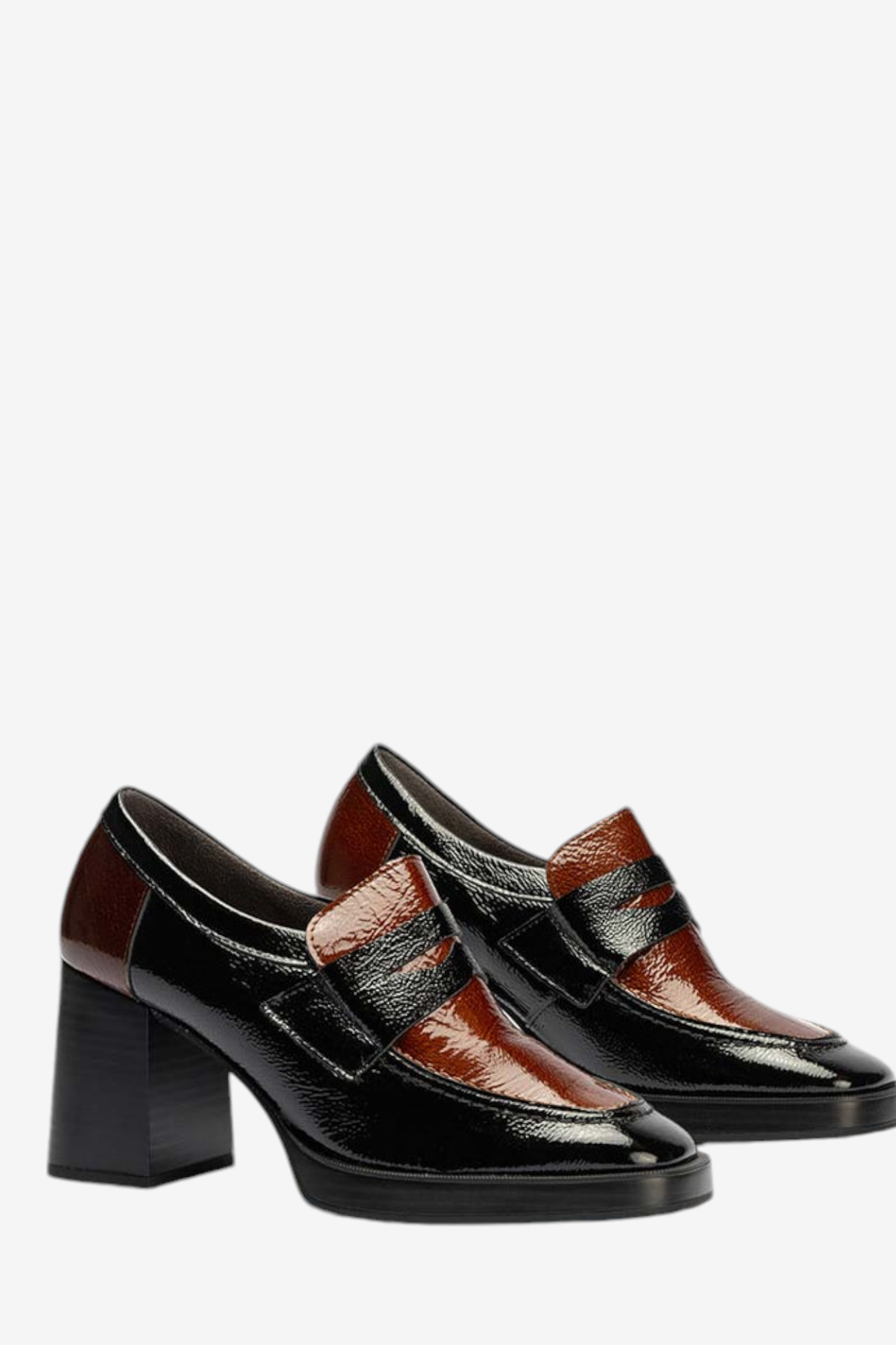 PITILLOS 10196 TAN/BLACK PATENT HEELED LOAFER