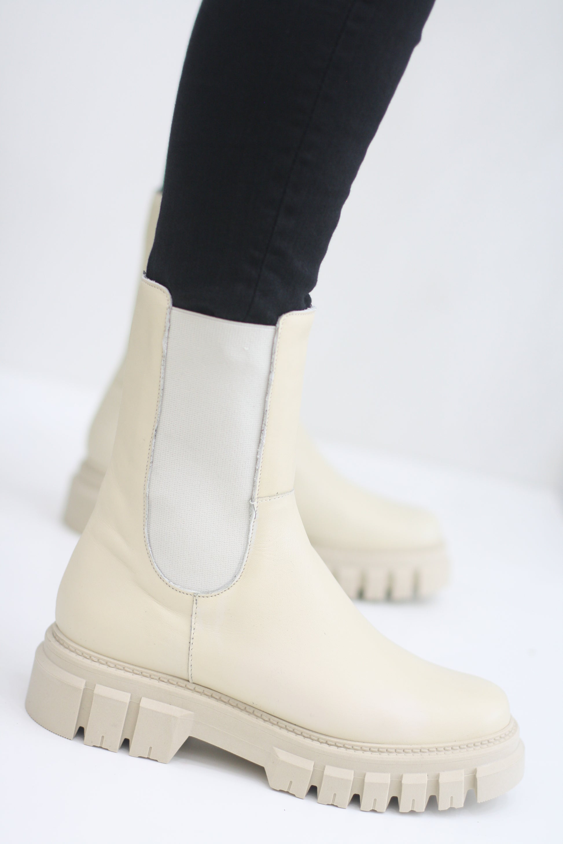 PITILLOS 5384 CREAM LEATHER CHUNKY CHELSEA BOOT