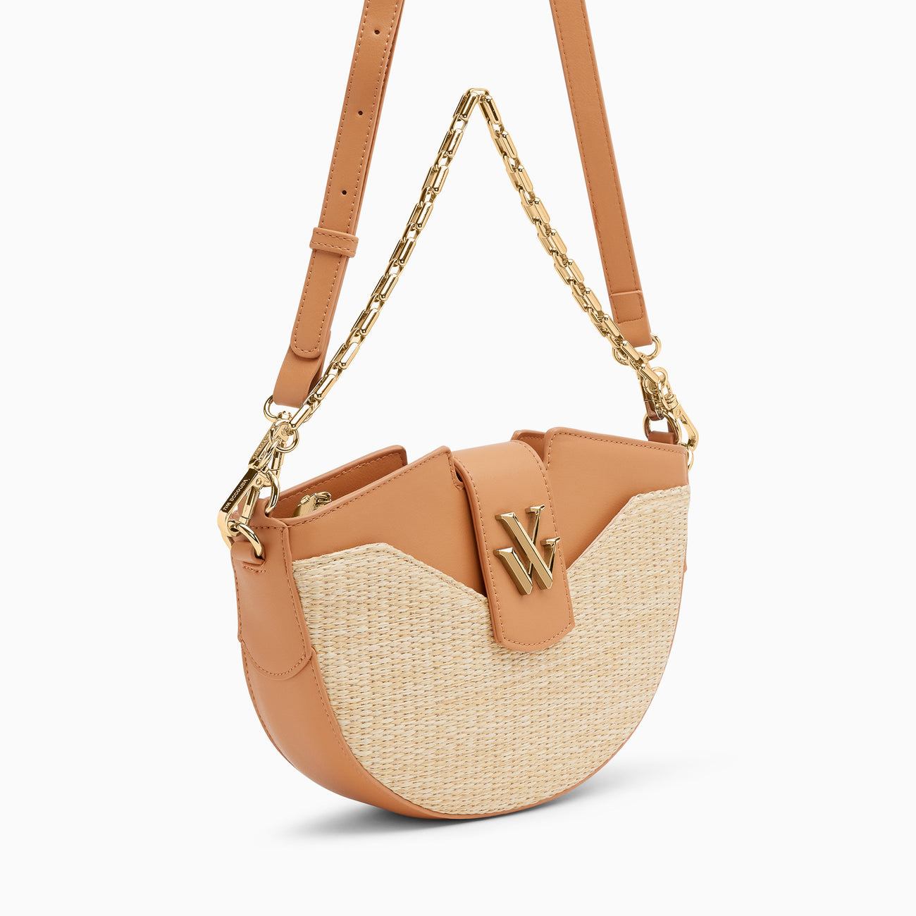 VANESSA WU JOHANNA RAFFIA/CAMEL HALF MOON BAG