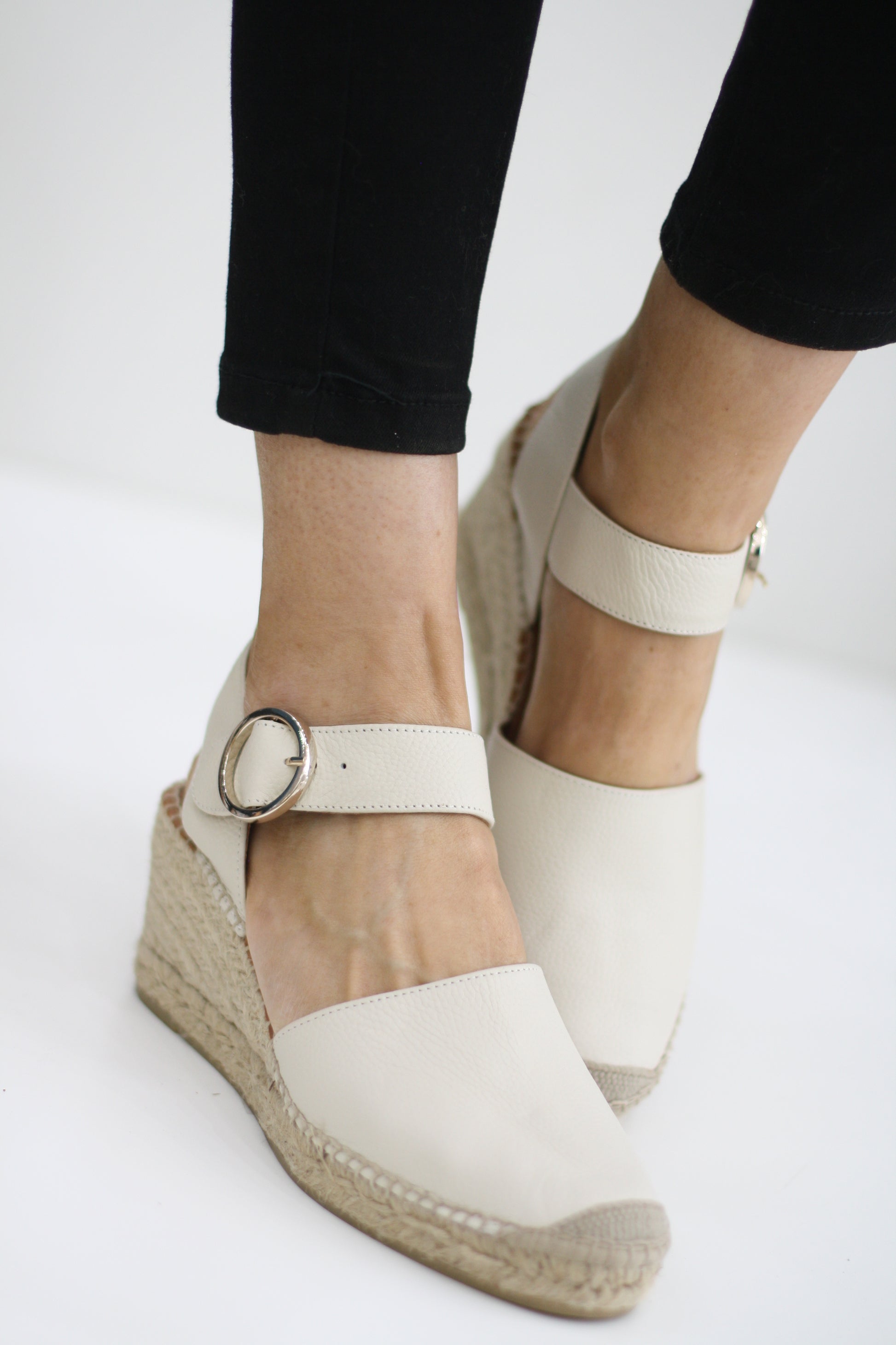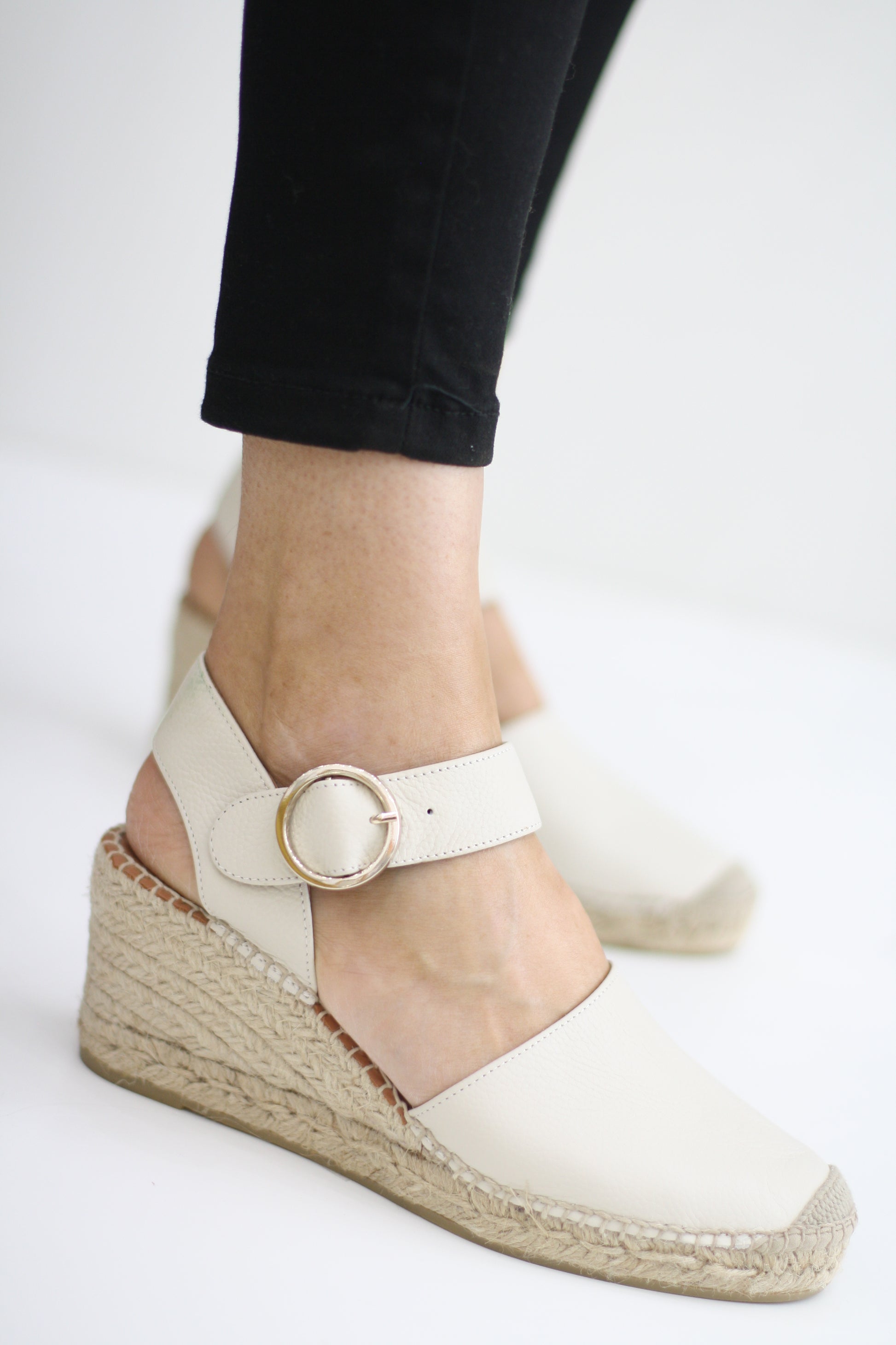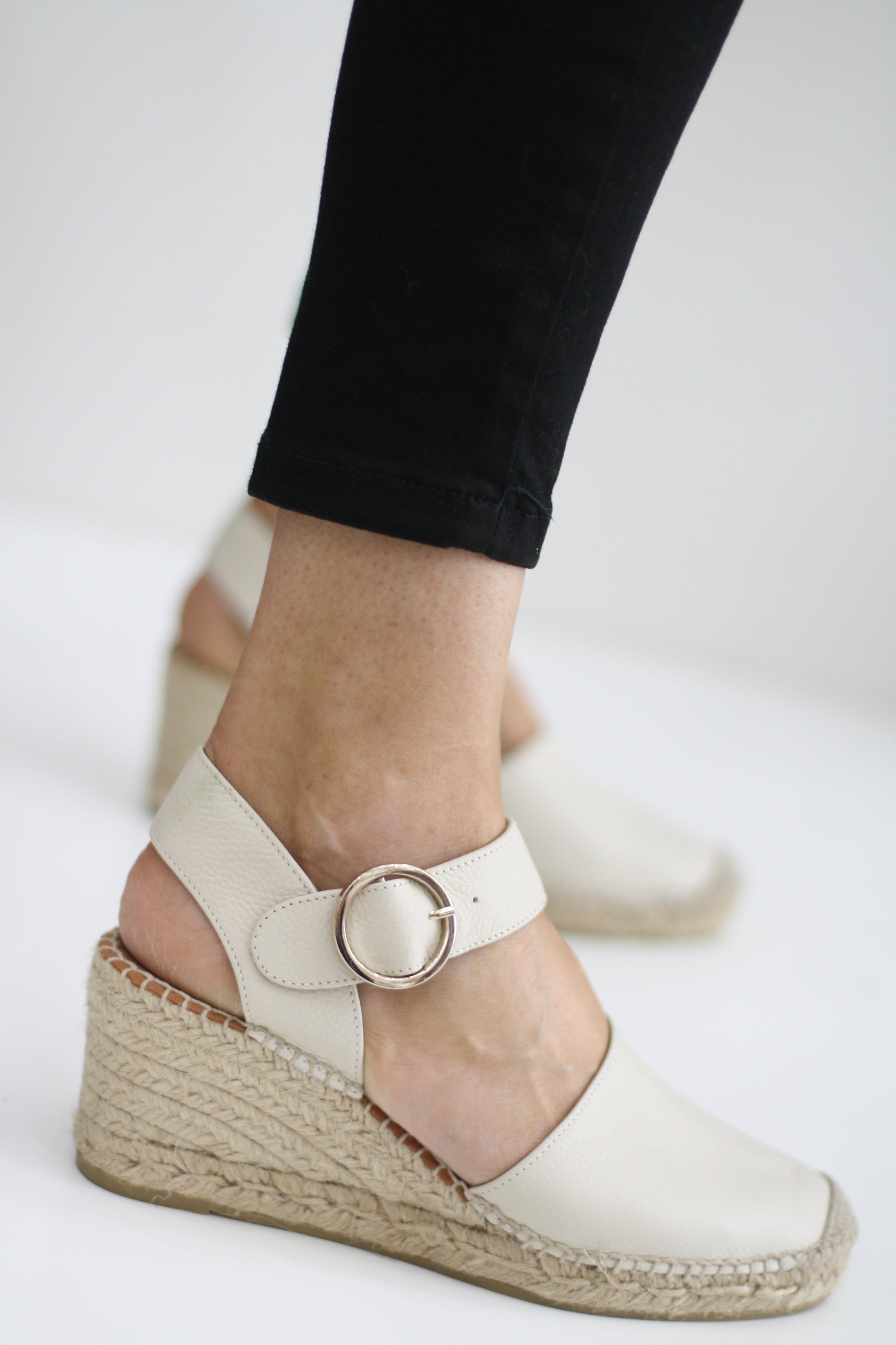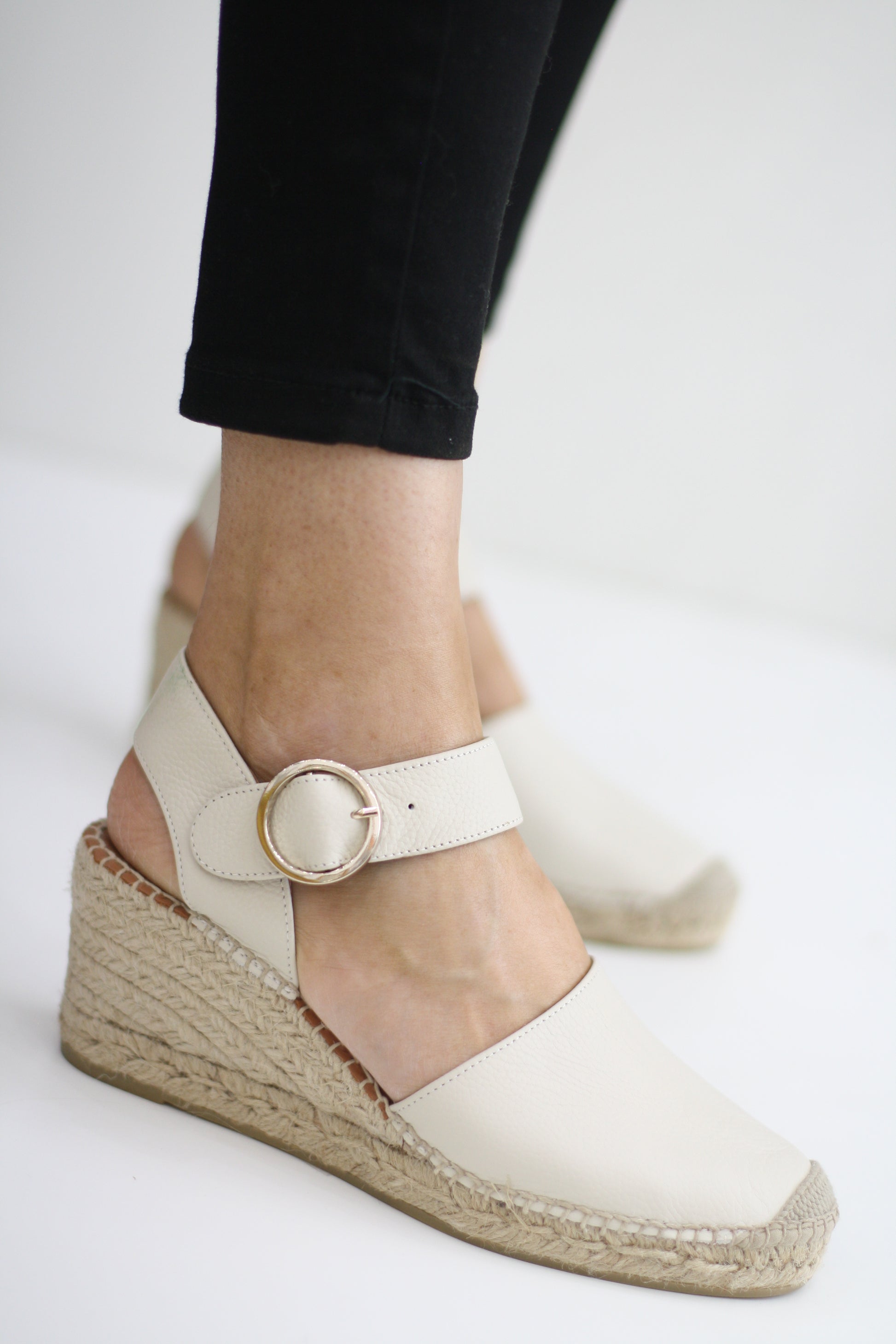 VIGUERA 1922 CREAM LEATHER ESPADRILLE WEDGES